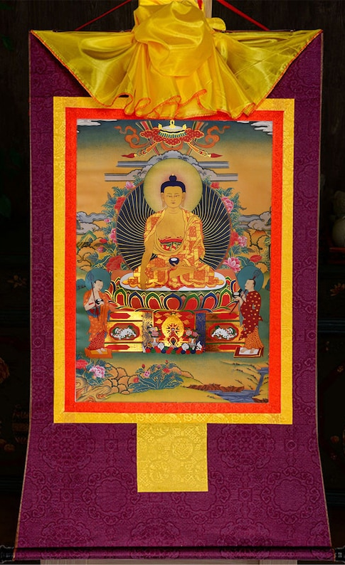 His thangkas have been decorated by his teacher, Lama Yeshe, with prayer scarves of bright yellow, orange, and white. He is cared for; and he cares not just for a cause but also for the people.