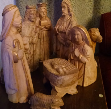 I was surprised again at Dad’s funeral, when a retired Baptist preacher revealed that my father talked with him many times about God. Turns out, Dad had been attending the Roman Catholic church in Ellensburg and was most recently worshipping with the Methodists. Once you start to slide, you may be surprised where you arrive. A month or so after his death, my sister mailed me his rosary and his rustic wooden crèche figures: at the center is Jesus, wonderful counselor.